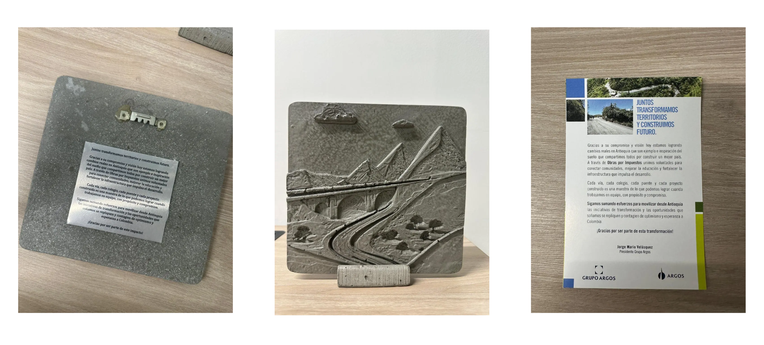 A través de este reconocimiento, representado en una pieza conmemorativa de concreto, queda plasmado nuestro compromiso y visión para conectar comunidades, fortalecer la infraestructura, mejorar la educación y contribuir al desarrollo sostenible de Antioquia.